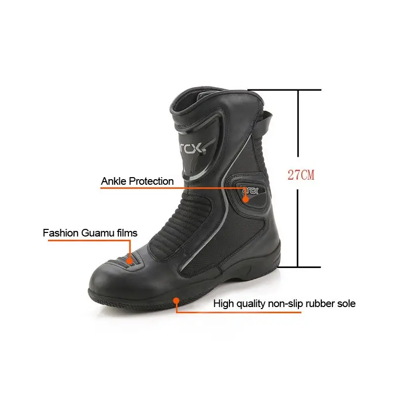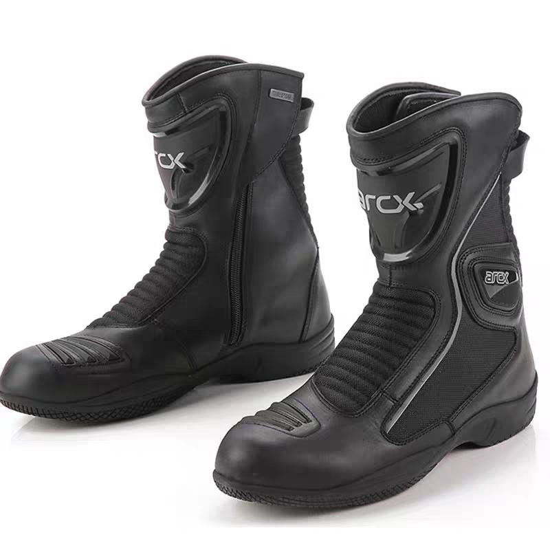 ARCX L60568 Motorcycle Boots combine cowhide leather durability, a waterproof breathable lining, and reinforced protective zones for reliable riding performance. Finished with a mid-calf protective design and anti-slip rubber outsole, they deliver comfort, safety, and stability for touring and everyday motorcycle use.