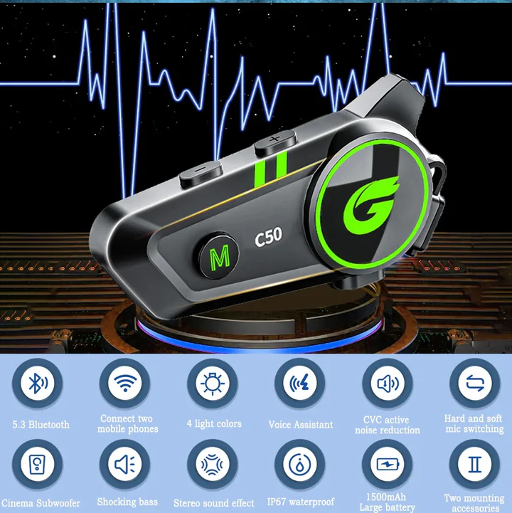 C50 Motorcycle Wireless Helmet Headset provides a premium, safe, and connected riding experience, blending high-tech functionality with rugged reliability.