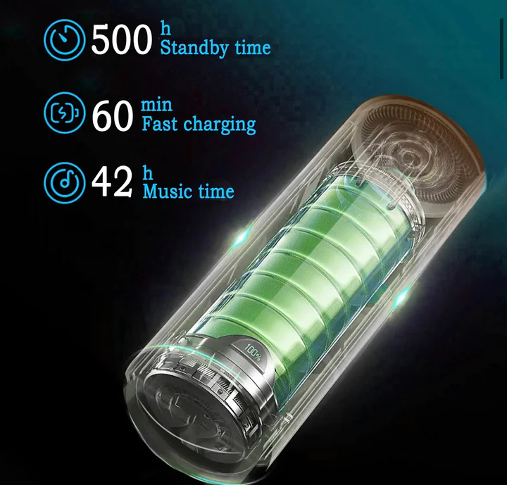 - Extended Use Battery: A powerful 1500mAh battery provides an impressive 42 hours of continuous usage and a 500-hour standby time.
