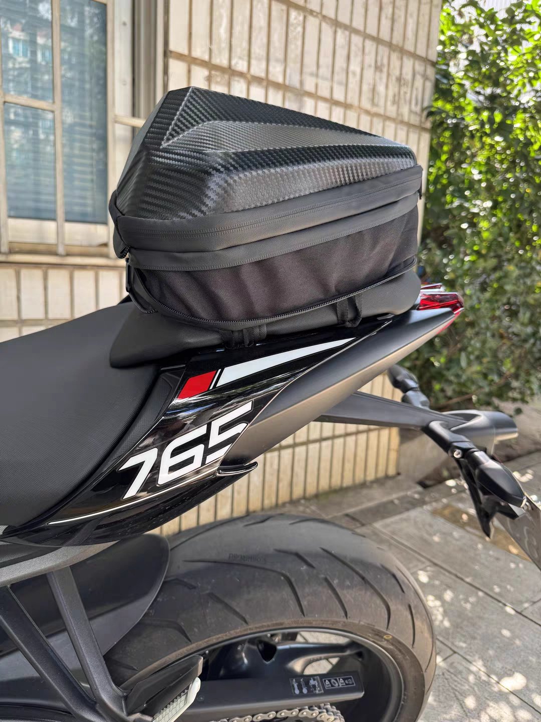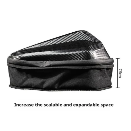 The Expandable Carbon-Style Tail Bag blends high-speed aerodynamics with rugged utility. Featuring a molded hard-shell exterior, expanded capacity, and a quick-release mounting system, it provides secure, weather-resistant storage that enhances—rather than hides—your motorcycle’s aggressive styling.