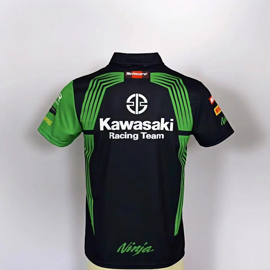 Elevate your race-day look with the official Kawasaki Racing Team Replica Polo. This high-performance shirt is modeled after the technical apparel worn by the World Superbike (WorldSBK) team.