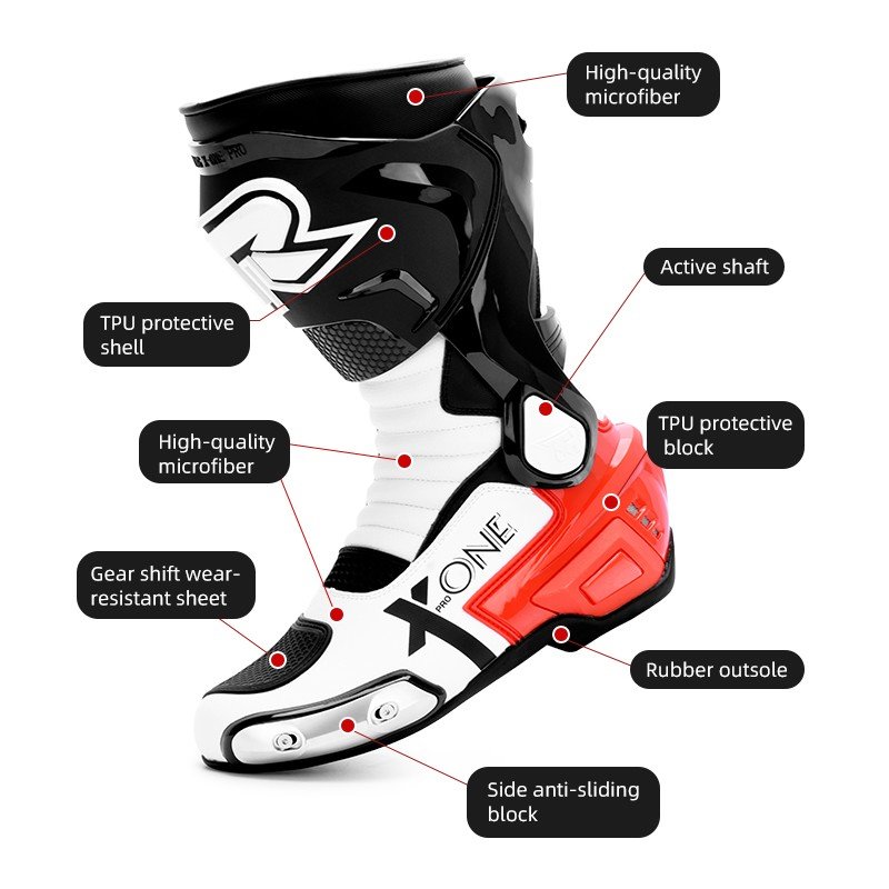 - Sport Racing Boot Silhouette: A tall racing-style motorcycle boot designed to deliver maximum support and aggressive sportbike aesthetics.